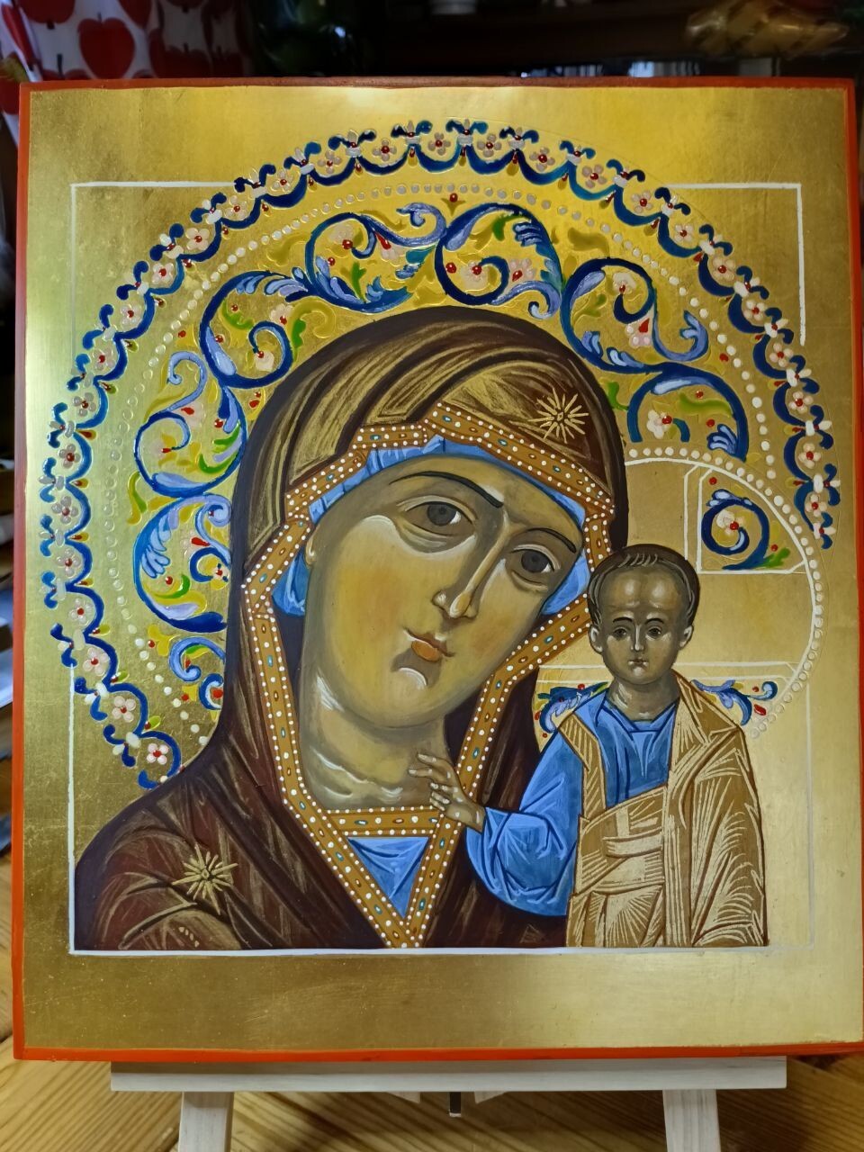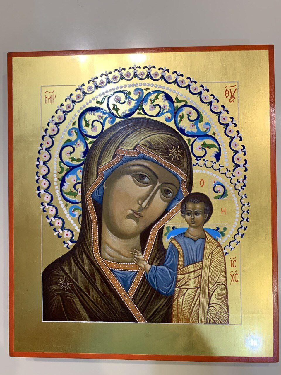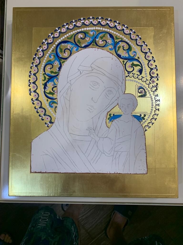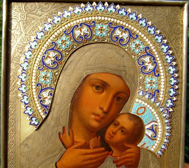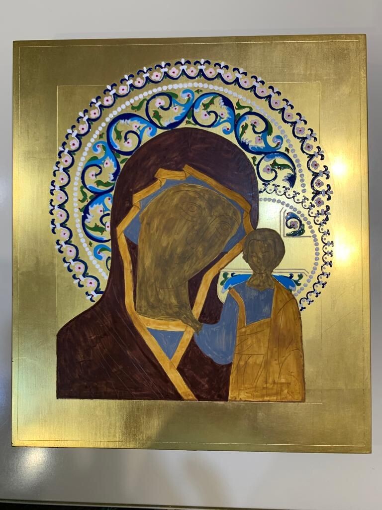Богоматерь Казанская одна из самых почитаемых икон в Православной Церкви. Ее образ находится практически в каждом доме. Мы возьмем за образец икону Казанской Богоматери 19 века и в течении курса будем изучать этот образ. В задачу курса входит построение красочного нимба и изучение техники эмали, золочение на тухлый белок или клеевое золочение, изучение написания складок, лика и работа с техникой плави.