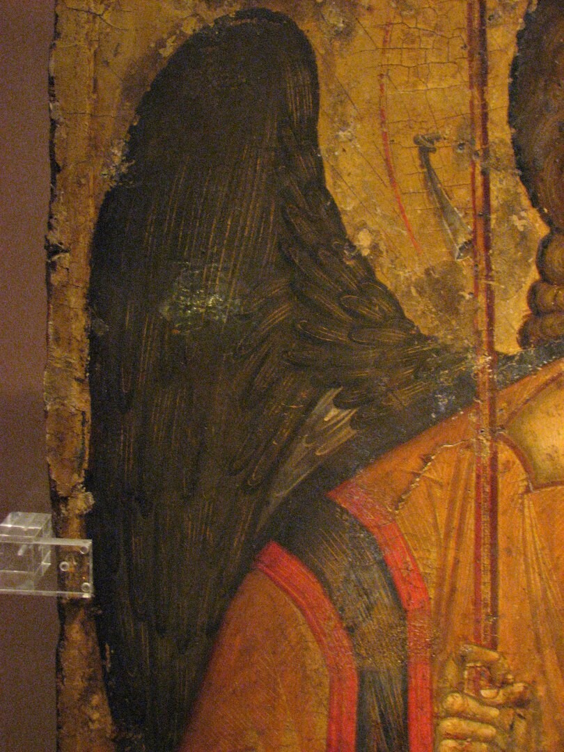 Мы посвятим время более подробному изучению написания Лика. На курсе мы берем доску большого формата как раз для того, чтобы написать более крупный лик, плюс к этому иконы Ангелов часто изображаются с очень сложным рисунком влас. В курсе мы будем подробно изучать построение влас на иконе. Увидим, как послойно сделать объемные кудри на иконе Архангела Михаила, а так же узучим более прозрачное написание складок. Сделаем отдельно разработки написания Лика, а так же нанесем орнамент на нимб и золото на одежды.
