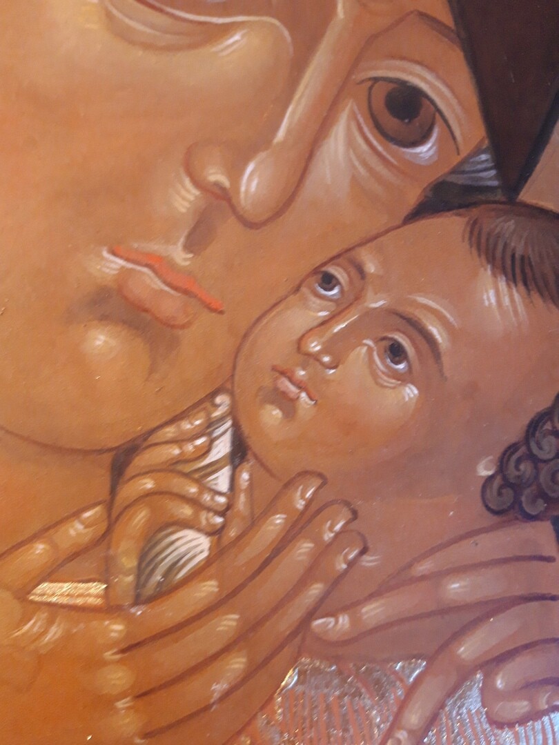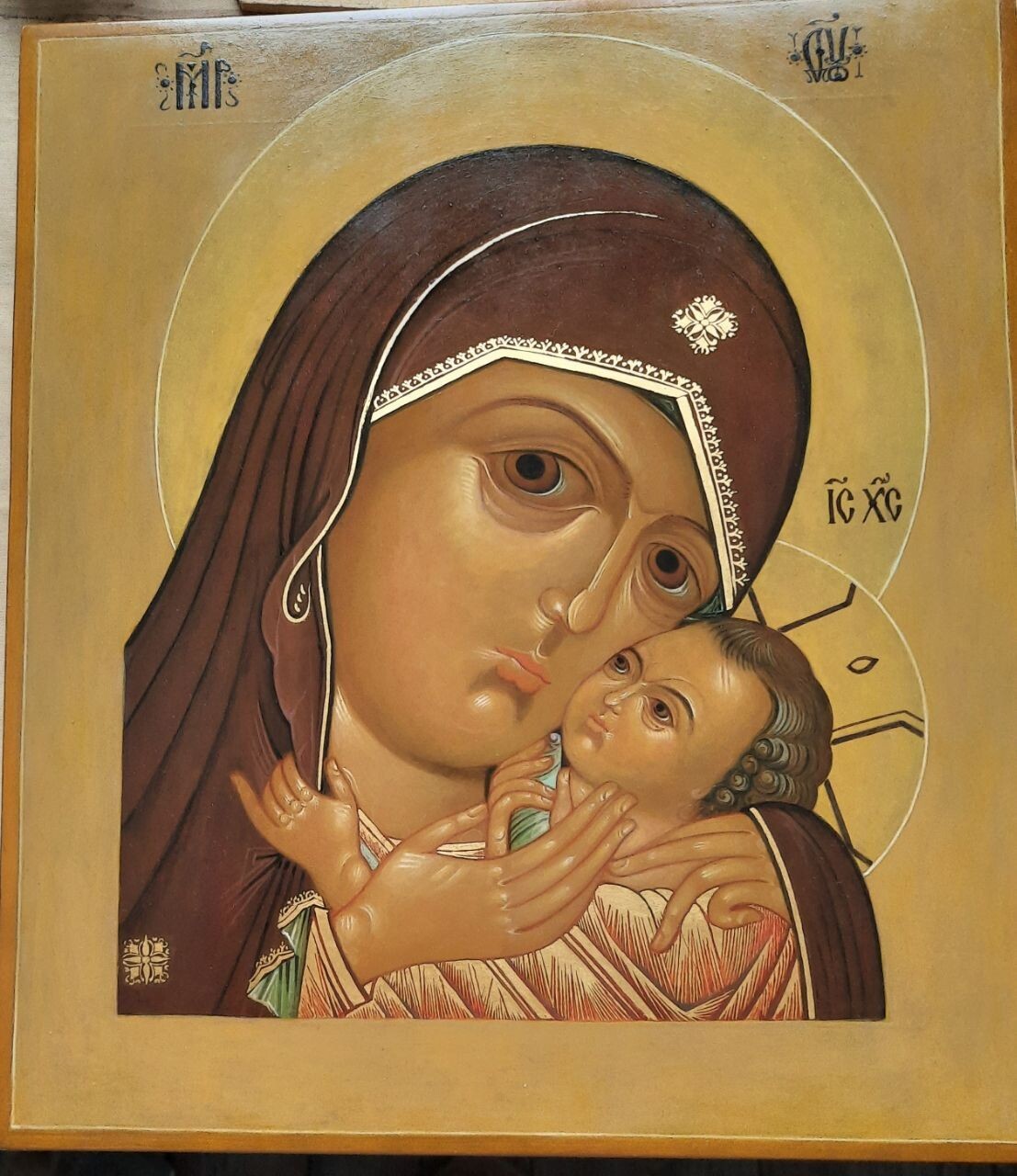 Мы начнем работать сначала с рисунком, затем перенесем рисунок на доску. Мы постараемся подойти как можно ближе к образцу, ведь именно там так много показано материнской любви Богоматери к Младенцу Христу. Поработаем с цветом, перейдем к плавям , найдем красивый рисунок глаз, чтобы как можно правдивее передать слова Дионисия Ареопагита, который видел Богоматерь при ее жизни:
